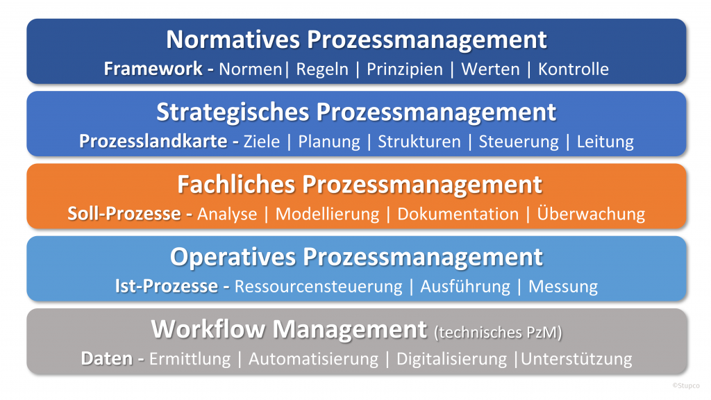 Das folgende Modell zeigt dir, wie du dein Prozessmanagement so aufstellst, dass es strategisch relevant wird, operativ funktioniert und fachlich sowie technisch skaliert.